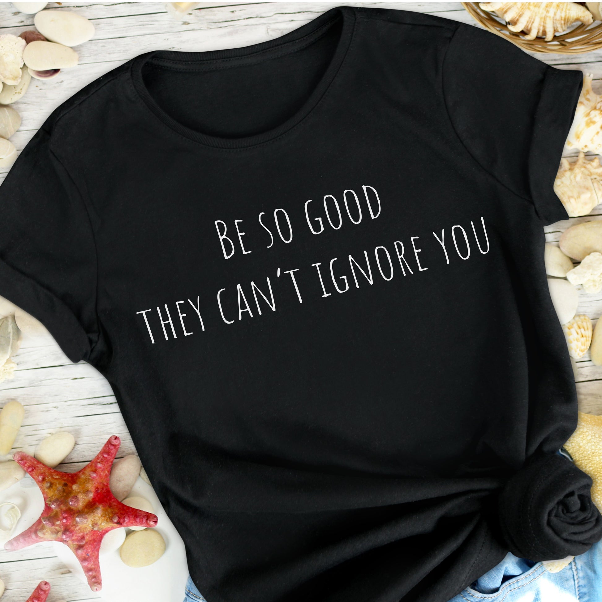 Empowering Message: The front of the tee features the powerful phrase, "Be So Good They Can't Ignore You." This message serves as a daily reminder to give your best and strive for excellence in everything you do.